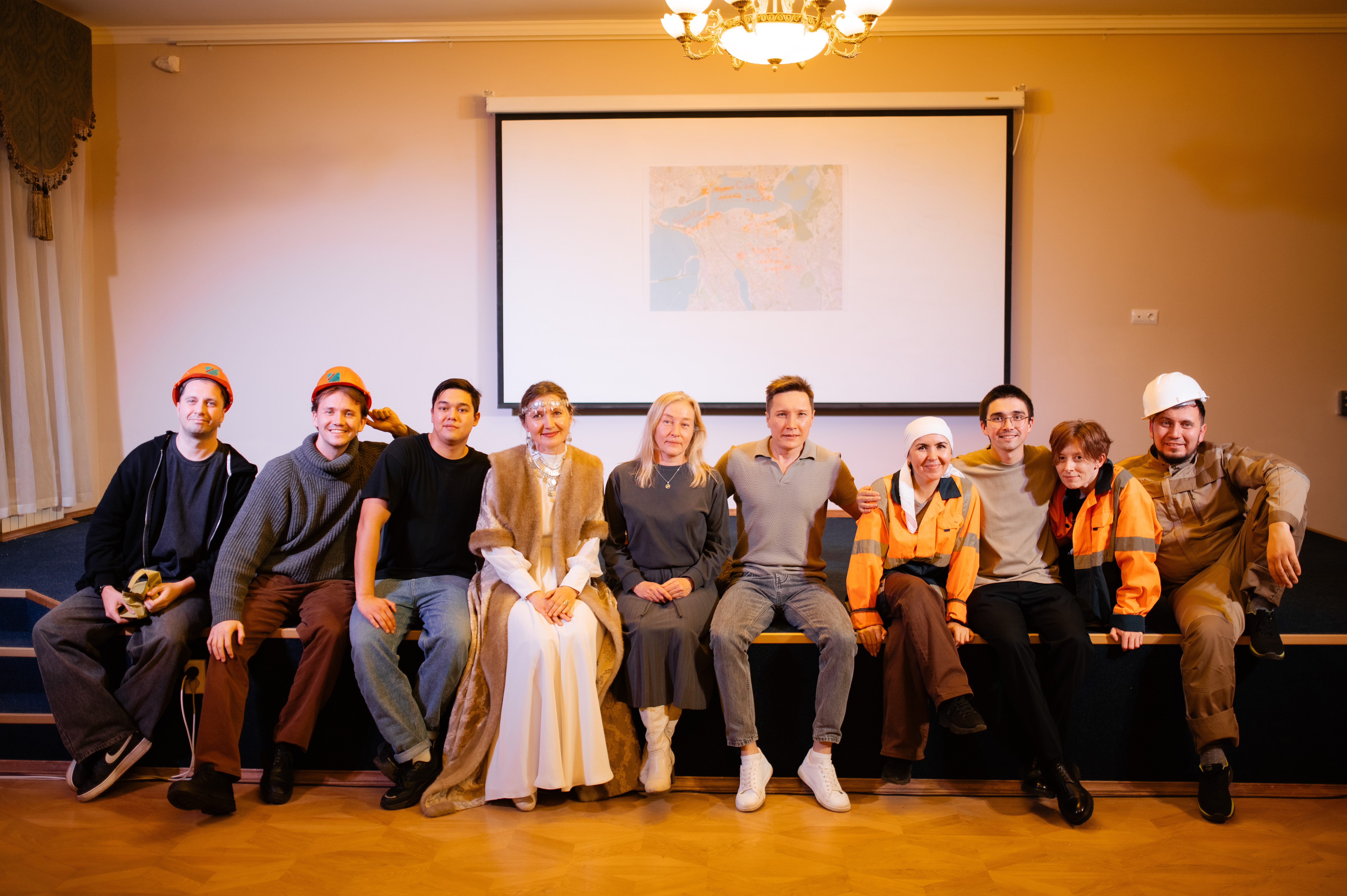 «Таш» спектакленең иҗат төркеме (сулдан): саунд-дизайнер Ислам Вәлиев, ут рәссамы Ринат Газизов, Айрат Шамс, Гөлүсә Батталова, режиссер Нәфисә Исмәгыйлева, автор Рүзәл Мөхәммәтшин, Лилия Гыйбадуллина, проектның авторы һәм сәнгать җитәкчесе Ильяс Фәрхуллин, Йолдыз Миңнуллина, Рифат Сәлах./Ф.Вәлиева фотосы
