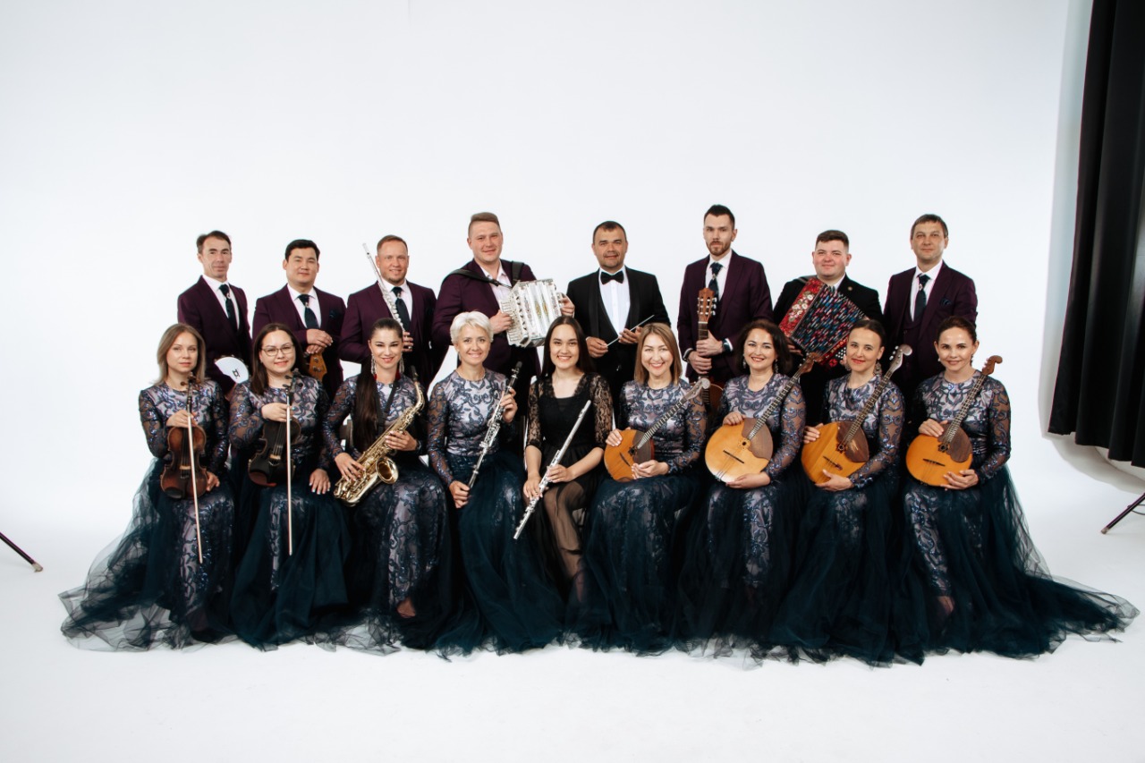 «Казан нуры» халык музыка уен кораллары оркестры. Җитәкчесе – Татарстанның халык артисты Рәсим Ильясов.