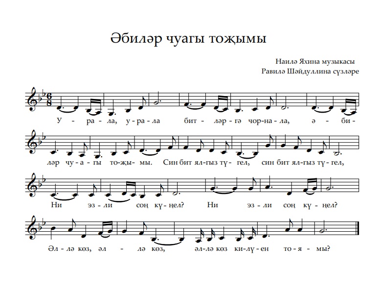 Газета укучылар игътибарына «Әбиләр чуагы тоҗымы» дигән җырымны тәкъдим итәм. Җыр сүзләренең авторы – талантлы язучы Равилә Шәйдуллина. Җырны башлап башкарган Ярамир Низаметдинов хәзер Санкт-Петербург опера театрында эшли, аның өчен дә сөеник, уңышлар телик.