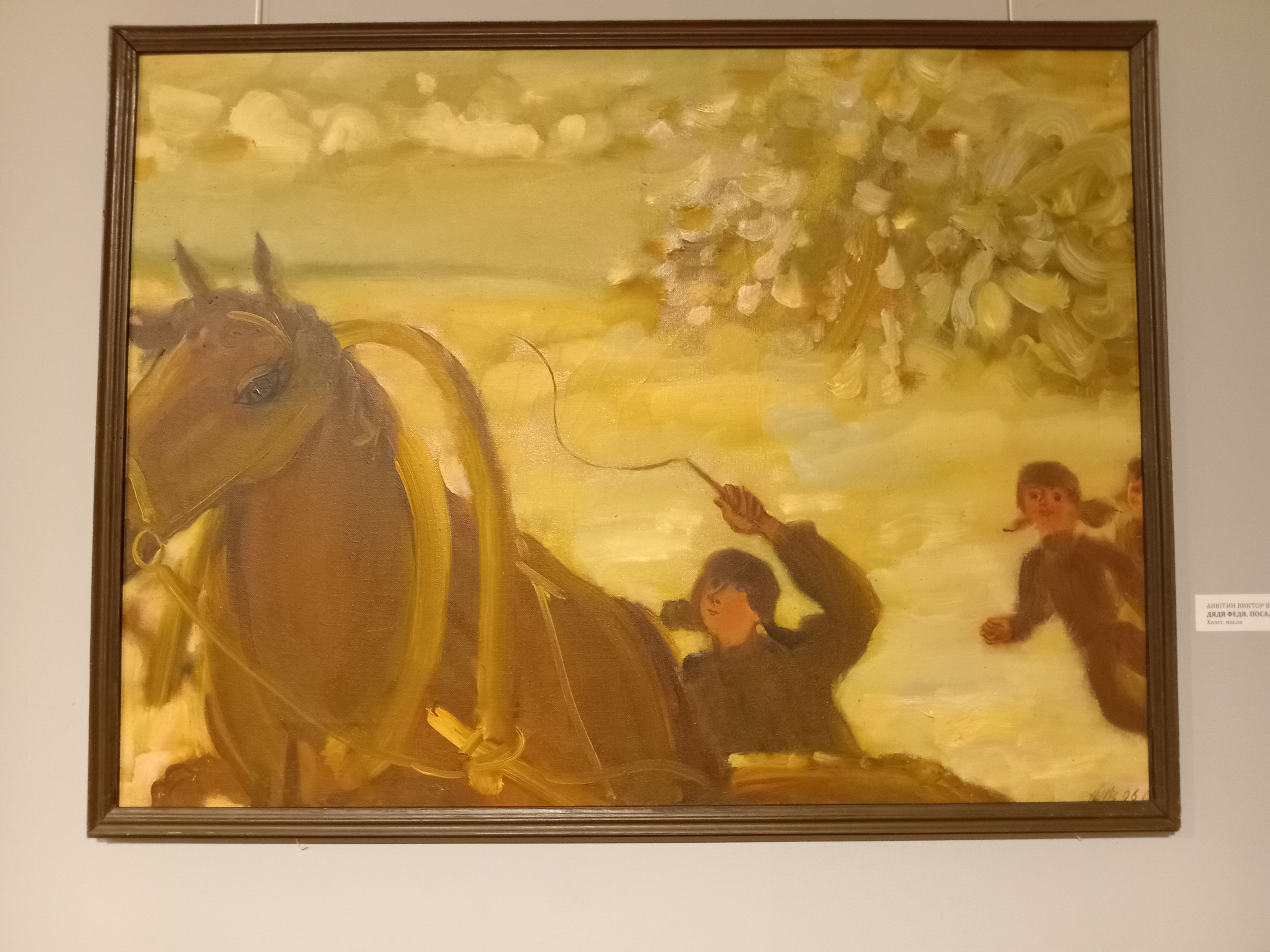 Кайбер картиналардагы композиция корылышы да шул ук фикерне ныгыта. Берсендә, арбага җигелгән ат чаба, мәсәлән. Ник шунда атны тулысынча сурәтләмәскә?! Ярты башы киндергә сыймый калган лабаса! Арба артыннан җилдертүче балаларның берсе дә яртылаш кына картинага кергән. Нәрсә инде бу, дип канәгатьсезлек белдерергә мөмкин тамашачы. Ләкин Анютин иҗатында бөтен нәрсә хикмәтле. Бу очракта исә ул табигатьнең киңлеген вә иркенлеген, хәтта кысага сыймавын белгертергә теләгән булса кирәк. Картинаның шул рәвешле корылышы шулай ук аңа караучының күңелендә көчле хәрәкәт тәэсирен тудыра.