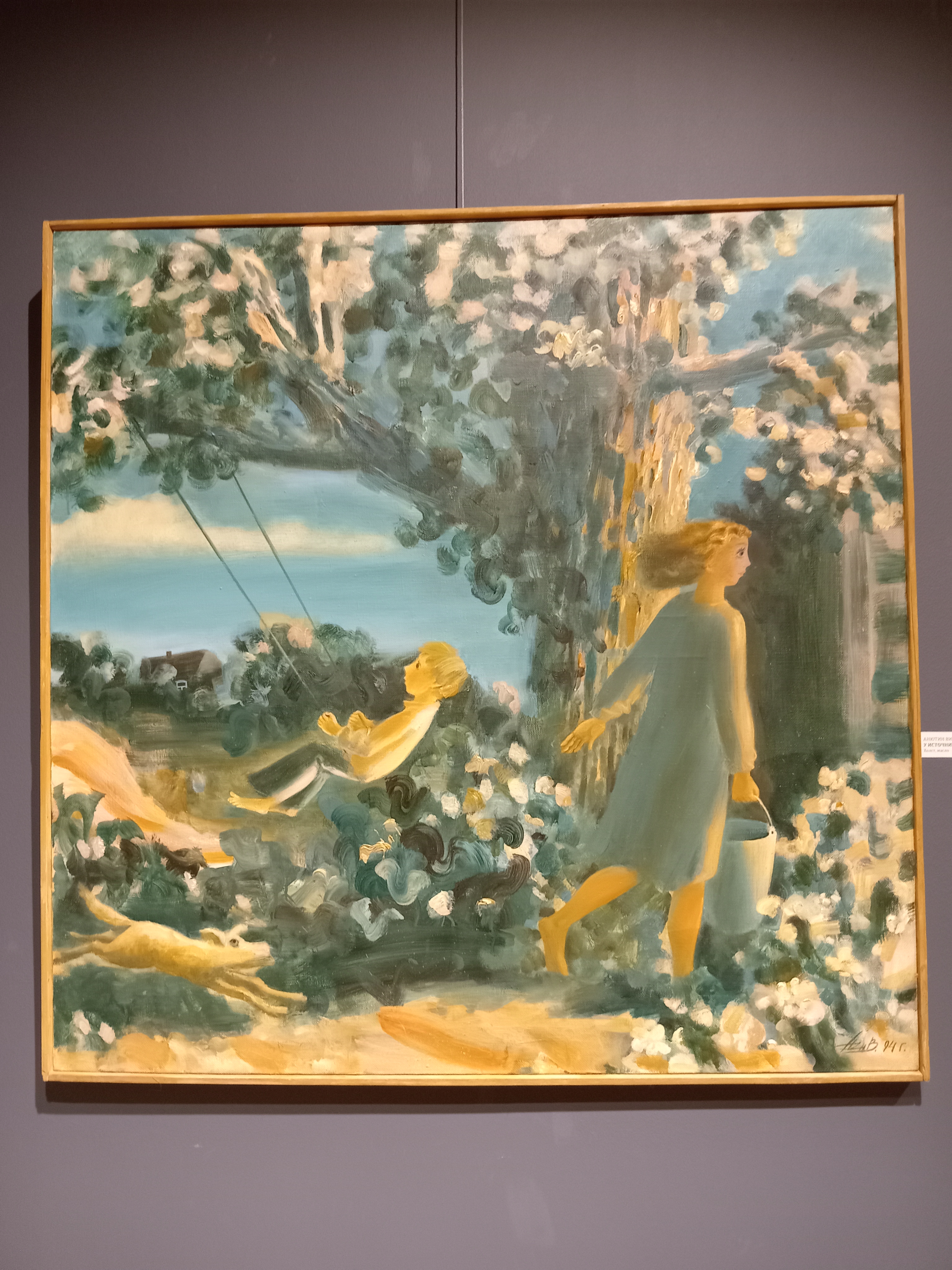Анютинның иҗатында бер нәрсәгә игътибар итәсең, кеше сурәтләрен ул ничектер әһәмият бирмичә, бер почмакта кечкенә генә итеп ясап куя. Картина үзе исә алмагач мул итеп биргән алмалар, сирин, шомырт чәчкәләре белән тулган. Кеше – төп герой түгел, димәк. Алма, сирин, шомырт чәчәкләрен беренче урынга чыгарырга теләгән ул. Җыеп кына әйткәндә, Анютинның иҗатында төп герой – табигать үзе. Авыл карчыклары да, бала-чага да табигатьнең бер өлешләре буларак кына тасвирлана.