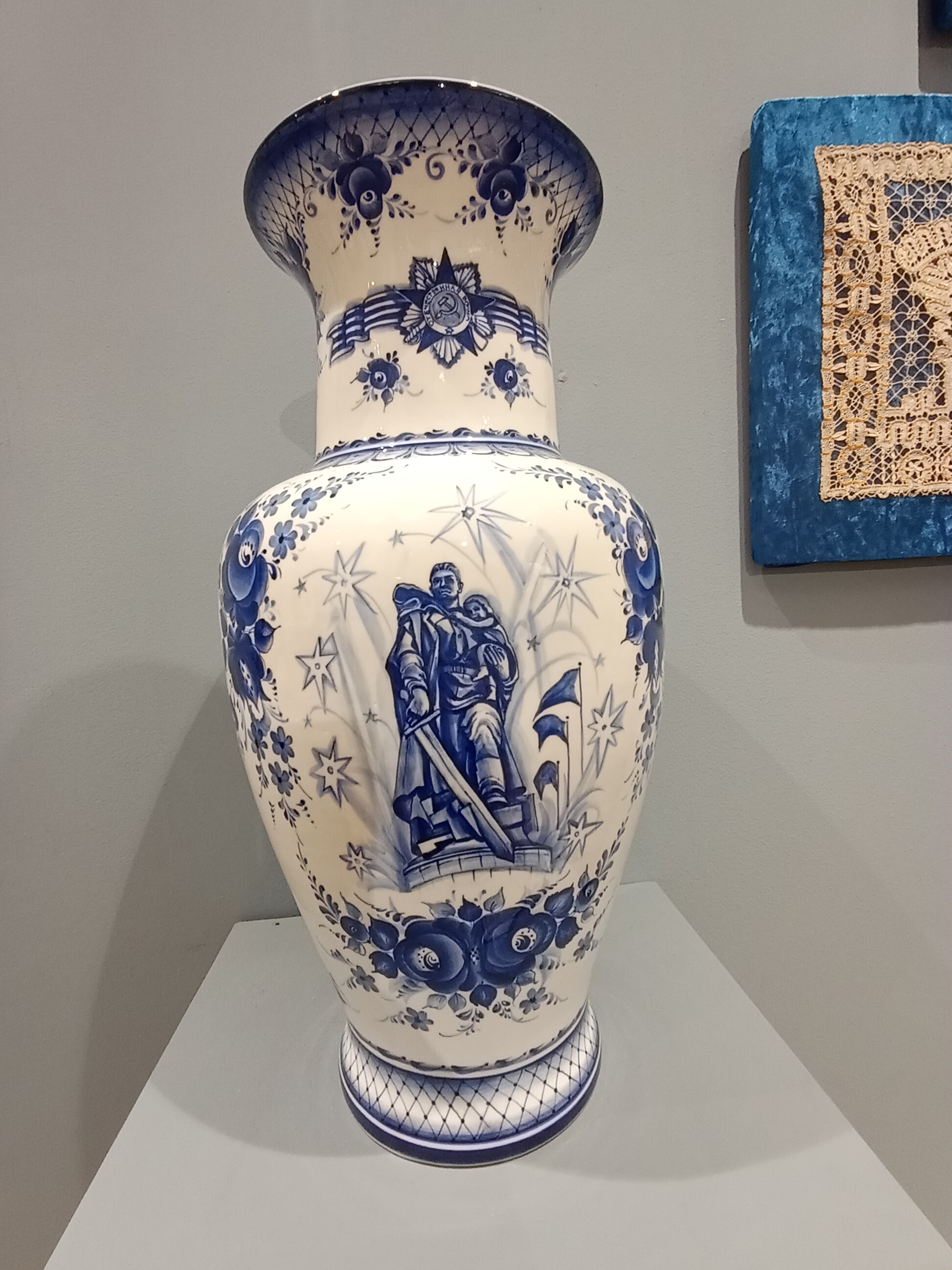 Гжель сәнгатендә акка зәңгәр буяулар белән бизәлгән ваза. /М.Галиуллина фотосы