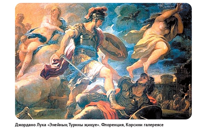 Эней бу җирләргә килгәнче, Лавиния рутул халкының патшасы Турн белән вәгъдәләшергә өлгергән була. Турн чит-ят берәүне үзеннән өстенрәк куюларын, Лавиниянең башка бер идарәче белән гаилә коруын үзенә хурлык дип кабул итә. Ул ачу белән һәм Энейның, һәм Латинусның армиясенә һөҗүм итә... Ул үзенә ярдәмгә бай, көчле этрусклар патшасы Мезенцийны чакыра. Троялыларның шәһәре үскәнгә, армиясе көчәя барганга борчылган Мезенций, икеләнмичә, рутулларга ярдәмгә ташлана. Бу куркыныч вәзгыятьтә Эней җирле халыкның исемен үзләштерергә була: үзенең халкын «латин»нар дип атый башлый». («Gli Etruschi, popolo segreto» (французчадан итальянчага тәрҗемәсеннән), 1959. – Б.137).