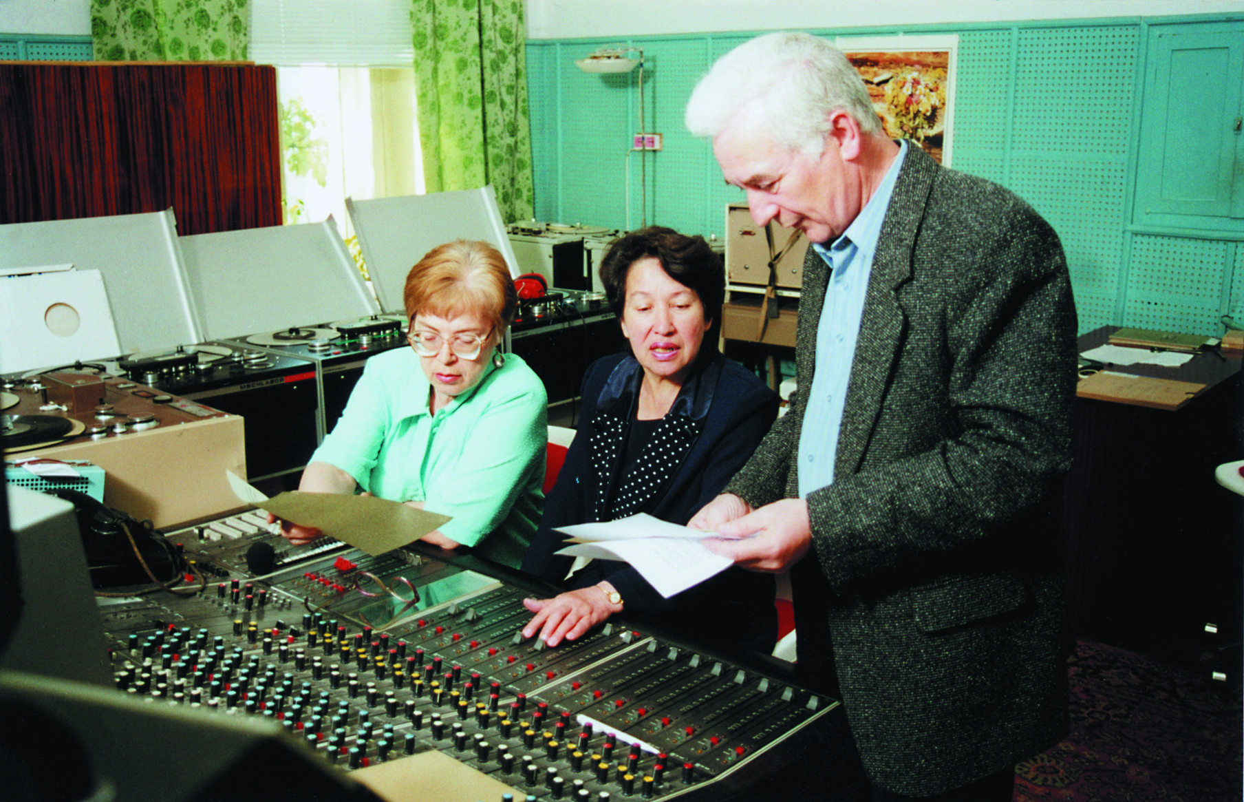 1988-1999 елларда радиожурналның мөхәррире булган Раил Миңнуллин тапшыруның режиссеры Әминә Шаһиәхмәтова һәм тавыш операторы Асия Бикбау белән.