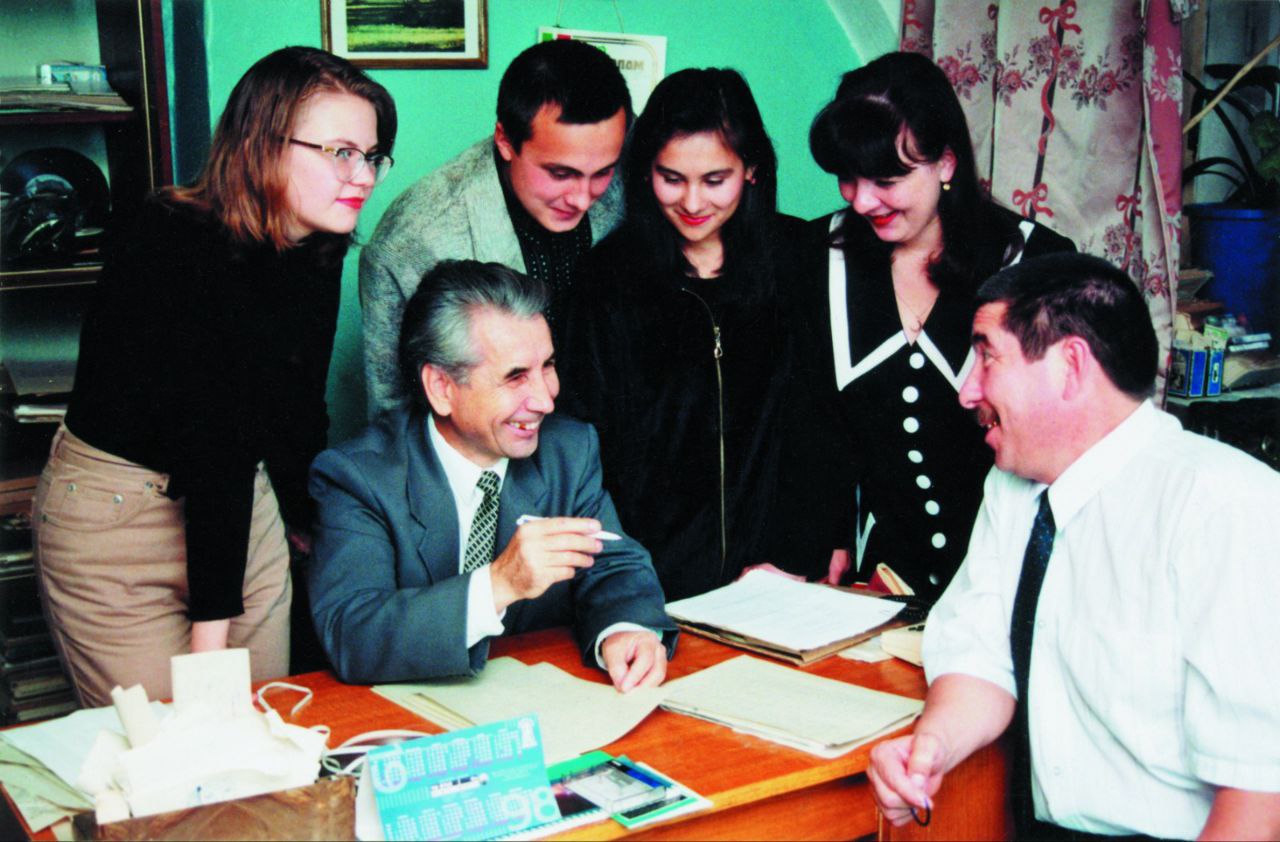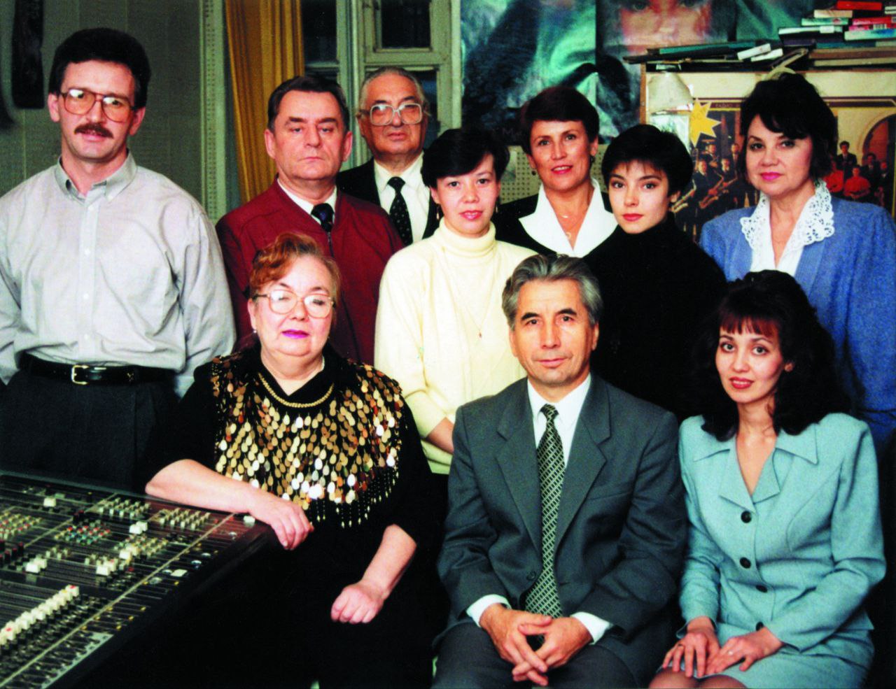 Татарстан радиосының әдәби-нәфис тапшырулар редакциясе. Җәүдәт Дәрзаман алда, уртада.