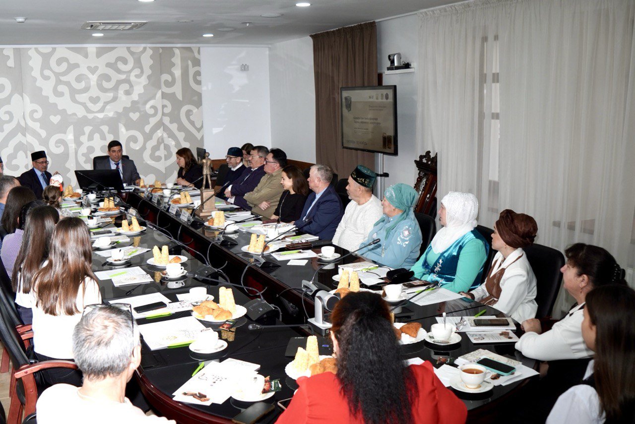 Казанда Бөтендөнья татар конгрессы Башкарма комитетында үткән түгәрәк өстәлдә катнашучылар. /Фото – t.me/tatar_yadkarlare