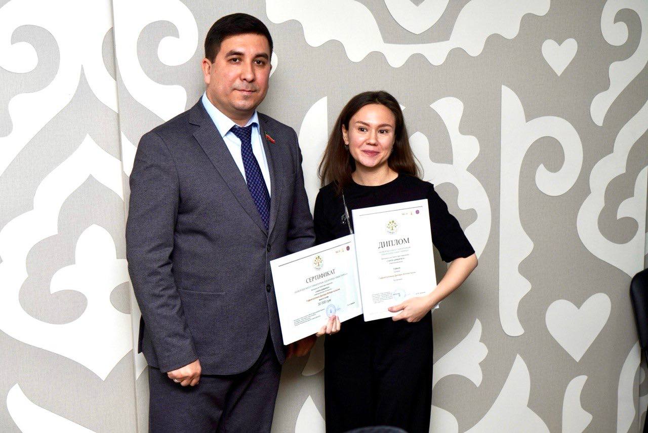 «Гаилә шәҗәрәсе» номинациясендә I урынны алган Диләрә Гафиятуллинаны Бөтендөнья татар конгрессы Башкарма комитеты җитәкчесе, ТР парламенты депутаты Данис Шакиров бүләкләде.