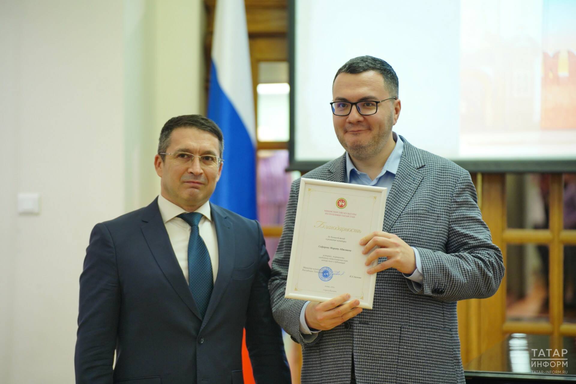 Татарстан мәдәният министры урынбасары Дамир Натфуллин китапның авторлары Марат Сәфәров һәм Ренат Аббяновка министрлыкның бүләкләрен тапшырды.